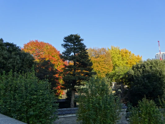 Roofから見える大倉山記念館の紅葉がきれいなので散歩がてら