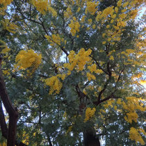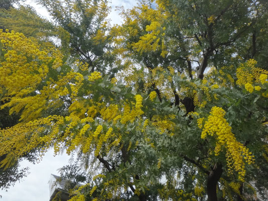 ミモザは青空に映えて一層鮮やかな黄色に見えました。