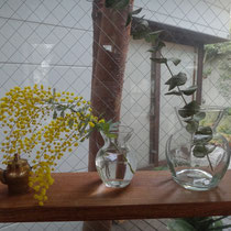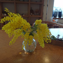 今日はお客様にミモザの花を少しずつですが