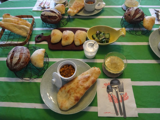 独特の形のナンは伸ばすのが大変でしたが真ん中は薄く周りは厚くできました。用意していただいたカレーで本格的な味が楽しめました。