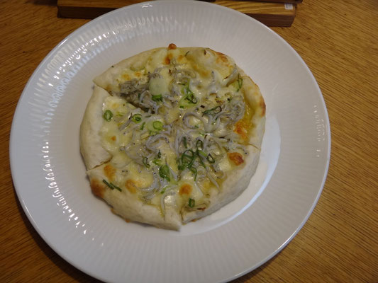 葉山の佐島のおいしい釜あげシラスでシラスピザを作りました。