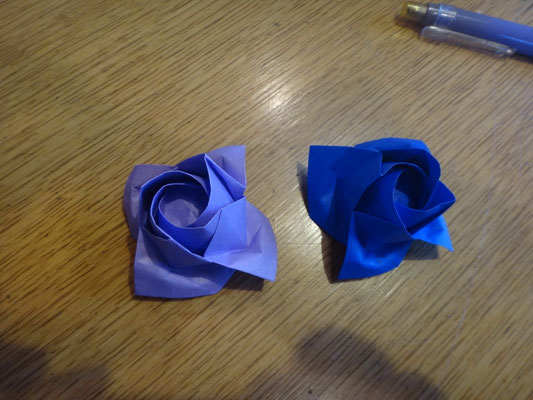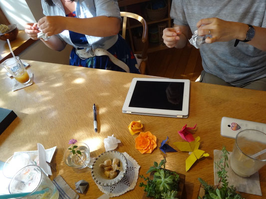 以前折り紙のバラを教えて頂いたお客様に又教えて頂きました。初めて挑戦したお客様は苦心してバラを完成されました。