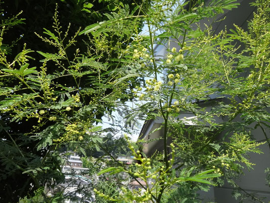 Roofには3月に真っ黄色に咲くミモザの他にアカシアデアネイと言う植木鉢に植わったミモザがあります。葉が繊細で美しいのが気に入ってますが今薄黄色の可愛い花が咲いています。華やかさはありませんが可憐な花をご覧下さい。