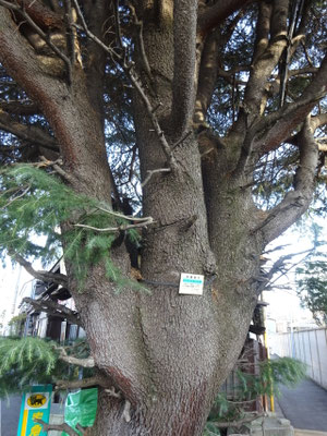 谷中のシンボルの様なヒマラヤ杉は3角の角に生えて隣のミカドパンと一体になっています。