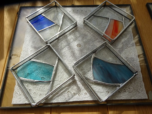 トレーは先日先生のアトリエで生徒さん自身がガラスのカットを