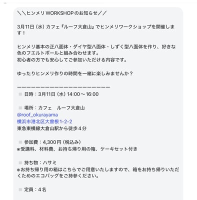 Roof okurayama では不定期に、さまざまなワークショップを開催しております。