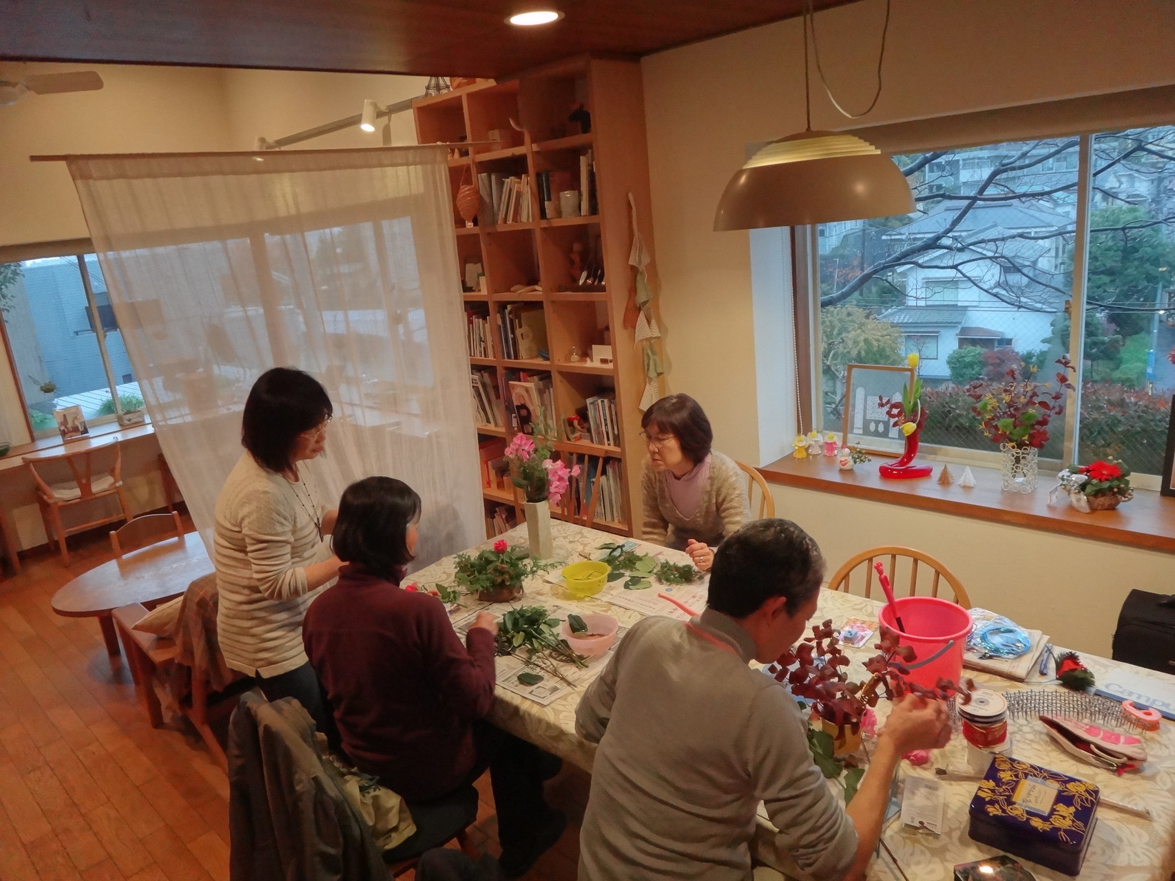 昨日に続き今日のワークショップも寒い雨になりました。 その中いらして頂きましたが暖かい店内でチョット早いクリスマスのお花を 生けて頂きその後ティータイムでおしゃべりと折り紙のツリーも作ったりで 楽しい時間を過ごして頂けたと思います。