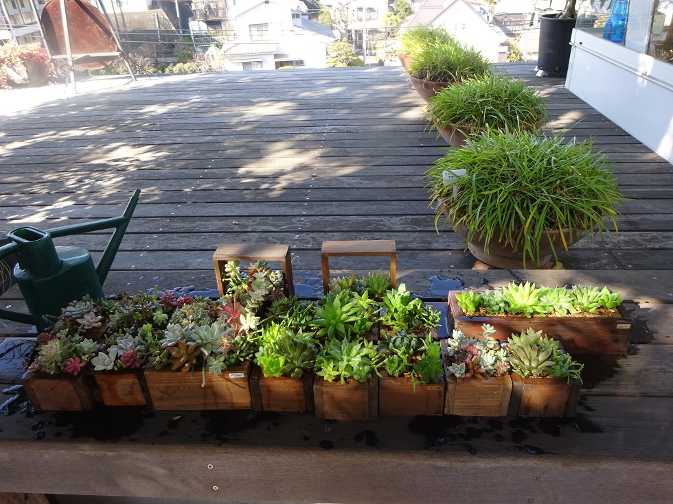 月2回の水やりとおひさまで長く楽しめる多肉植物寄せ植えは 冬でも瑞々しい緑が楽しめます。