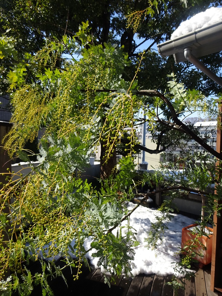 昨日の雪は今日の暖かい日差しでだいぶ融け 心配したミモザも無事でした。 花芽もふくらんで来て黄色い色も少しずつ濃くなってきます。 恒例のミモザのイベントは3月3日(土)4日(日)に開催します。
