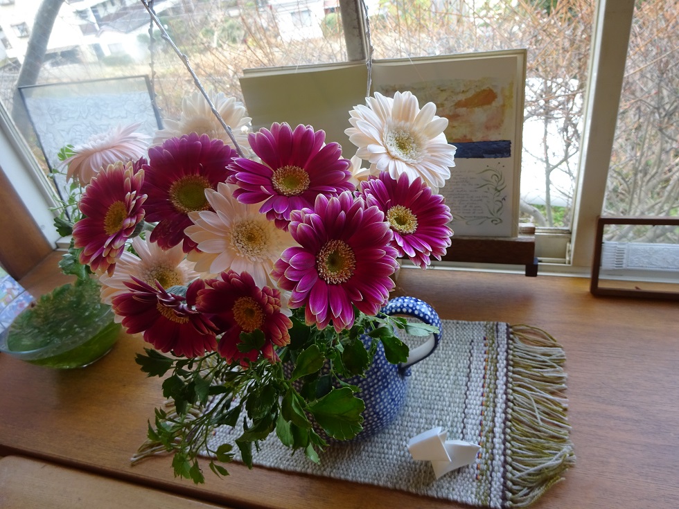 寒い日が続き雪も解けず残ったままです。 それでもお花屋さんには春の花が並んでいます。 ガーベラは昔に比べ色のバリエーションも多く 値段もお手頃なので楽しめます。