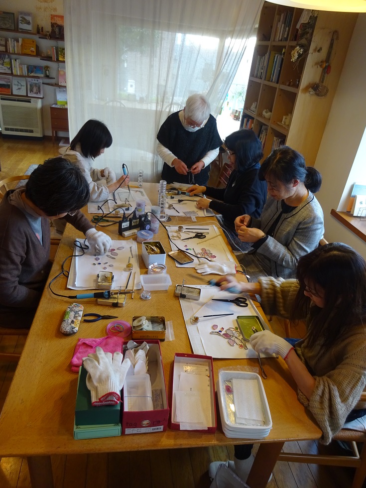 今日のステンドグラスワークショップは桜をイメージした アクセサリーやオーナメントを制作しました。 寒い1日でしたがピンクのガラスに春を感じました。