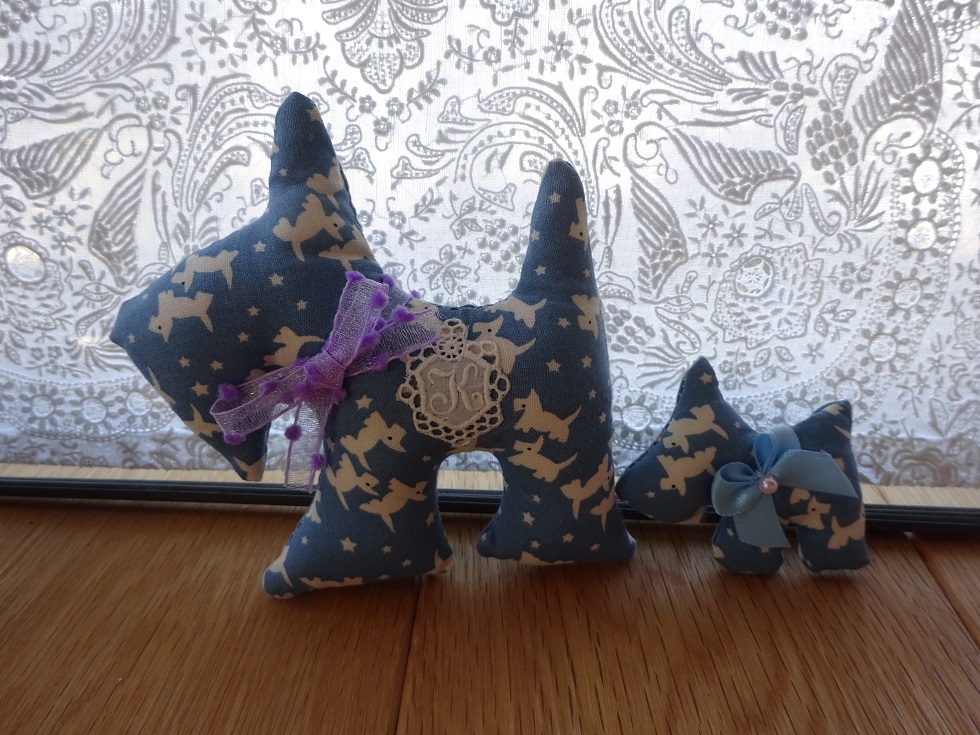 お客様から手作りのお年賀を頂きました。 スコッチテリアの親子のマスコットです。 ディズニーの「わんわん物語」で有名ですが 最近見かけません。 ペットもはやりすたりがあるのですね。