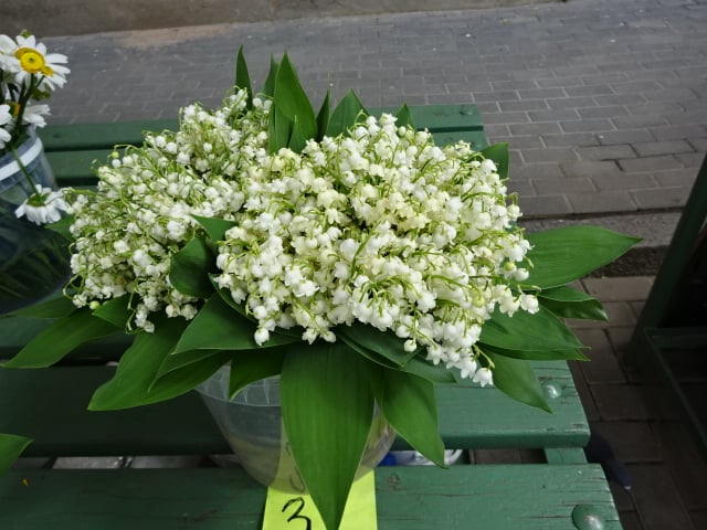 ラトビアの人達は花が大好きで日常的に花を 購入する習慣があるそうです。 朝お花を持って出勤する人を見かけます。 街角にはお花を売っている人がいて すずらんの花束が3ユーロでした。