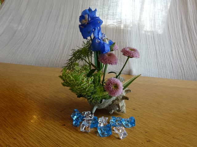 夏のお花のワークショップ1日目開催しました。 ヒマワリが3種類ありお花の新しい種類に驚きます。 黄色と青の組み合わせが夏らしいです。