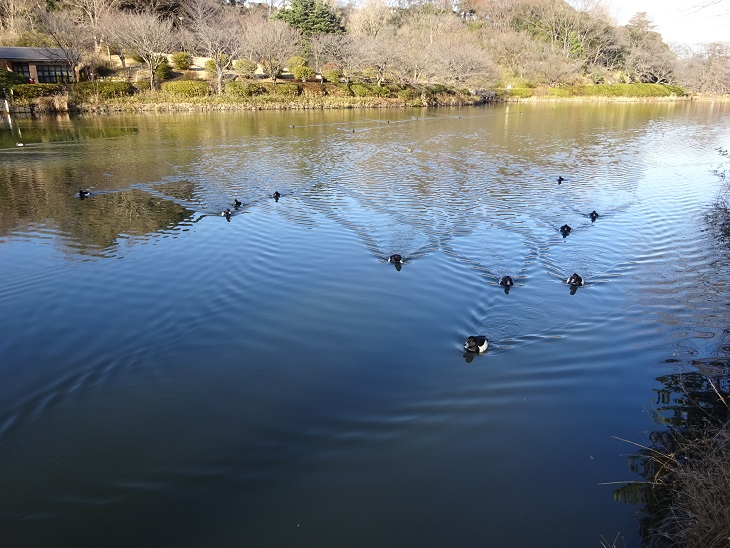 三ツ池公園を散歩しました。 池でカモを見ていたらカモが一斉にこちらに 向かってきました。 隊列を組んでるみたいで驚きました。 餌がもらえると思ったのでしょうが 残念ながら餌やり禁止でした。