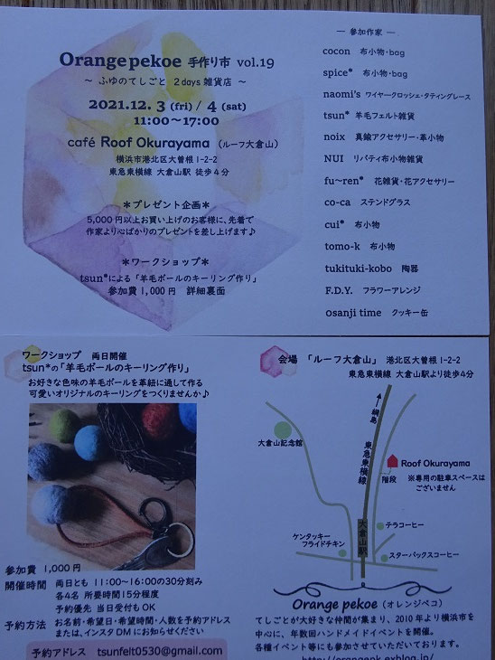 12月3日4日オレンジペコイベント開催します。 手作りの作家さん達が集まって2日間販売いたします。