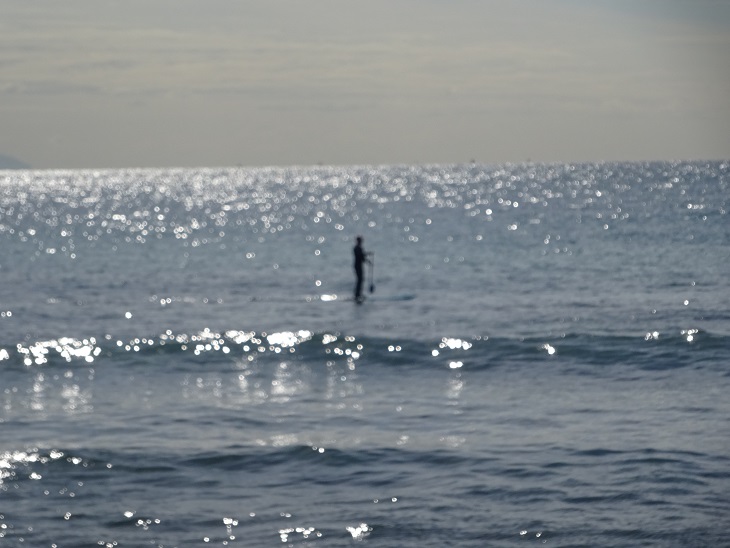 湘南の海を久し振りに見ました。 秋の海にはサップの人がパドルを操って 上手に波に乗っていました。