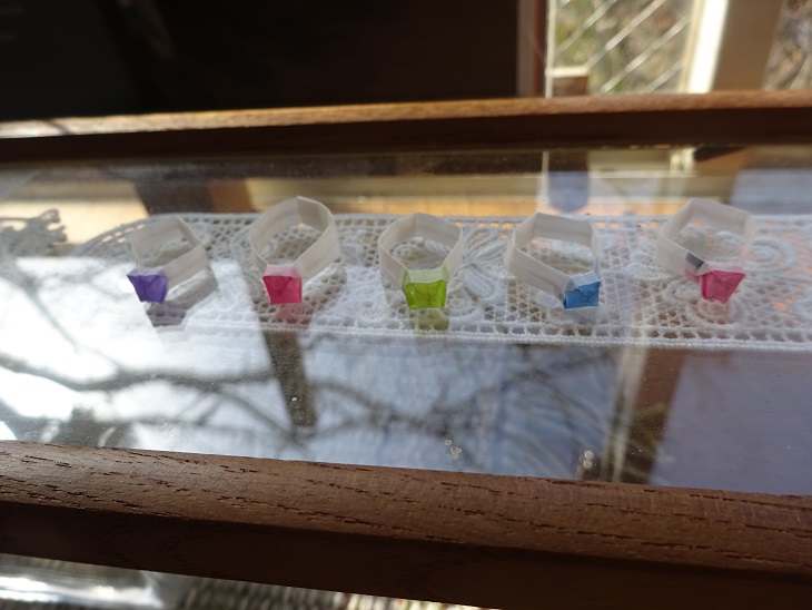 トレーシングペーパーとセロファンで指輪をおりました。 貰っても重くない指輪です。