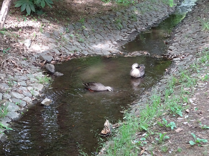港北ニュータウンのささぶねのみちの 小さな流れにカモの夫婦?