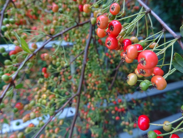 ピラカンサスが赤くなってきました。 友人のお宅のリビングから見えるピラカンサスは 降る様に生って素晴らしかったです。