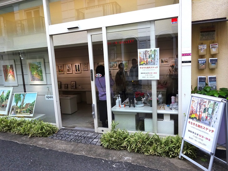 スケッチワークショプを開催して頂いている 茶木先生の展覧会に行ってきました。 表参道のおしゃれな裏通りの小さなギャラリーに 外国の街角がスケッチされた絵が飾られ 道行く人たちが目を留めていました。