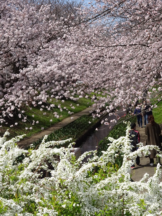 上からの桜と下には真っ白な雪柳が素晴らしいです。