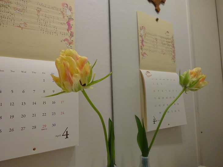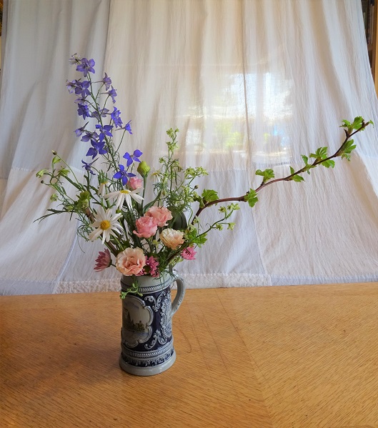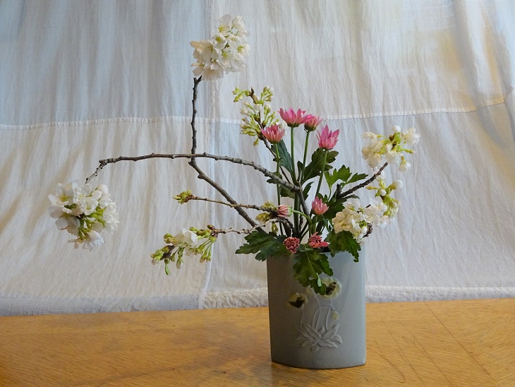 今日は時々雨が降ったりではっきりしない天気の中 午前中のアクセサリーワークショップと午後に お花のワークショップ開催しました。 ミモザさんから来たお花の中に桜があり 遅いお花見ができました。