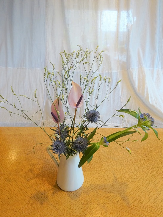 夏らしい爽やかなお花をご用意頂いたので それぞれ涼し気に生けられました。