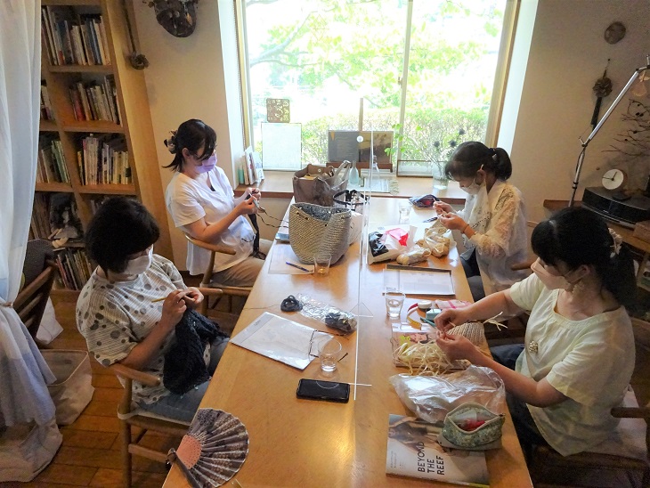 今日も暑い一日の中 編み物のワークショップ開催しました。 ワークショップ後ワッフル、ベーグルセットのランチを 召し上がって頂きました。