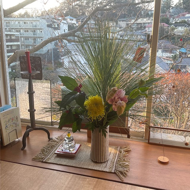 今年最後のお花のワークショップは お正月のお花でいきなりお正月の気分になりました。