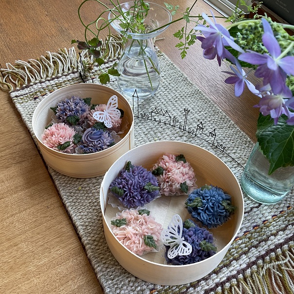 白あんに色をつける所からおはぎの台にあんこを 絞るまでを丁寧に指導され 参加された方がお家でつくれるように 口金のおみやげもありました。