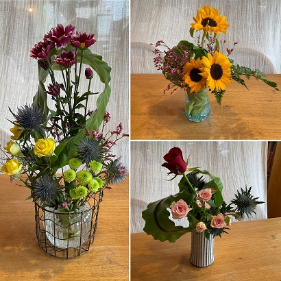 水曜日のワークショップは赤いダリヤが 人気でしたが今日は皆さんそれぞれ違ったお花を 選んで違った雰囲気になりました。