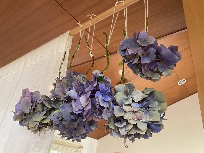 ご近所からアジサイを頂きました。 上から吊ってドライフラワーにしています。