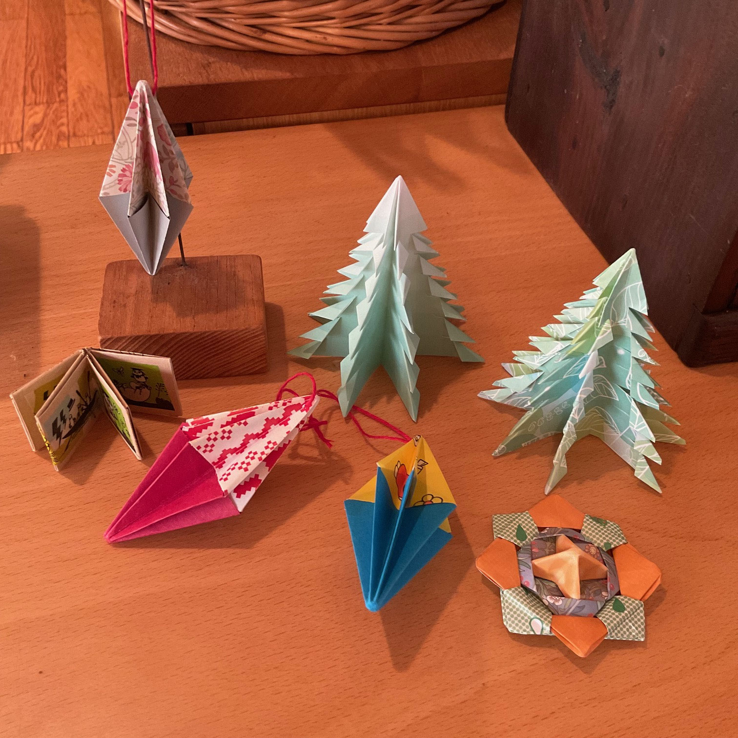 クリスマスに合う折り紙を折っています。 お店に並べていますので良かったらお持ちください。