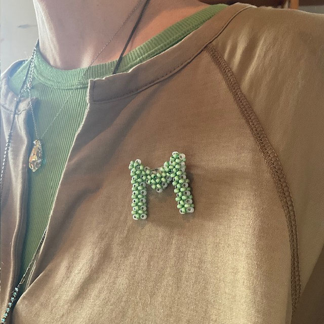 ビーズのブローチをオーダーされた方は お好きなグリーンのイニシャルがピッタリでした。
