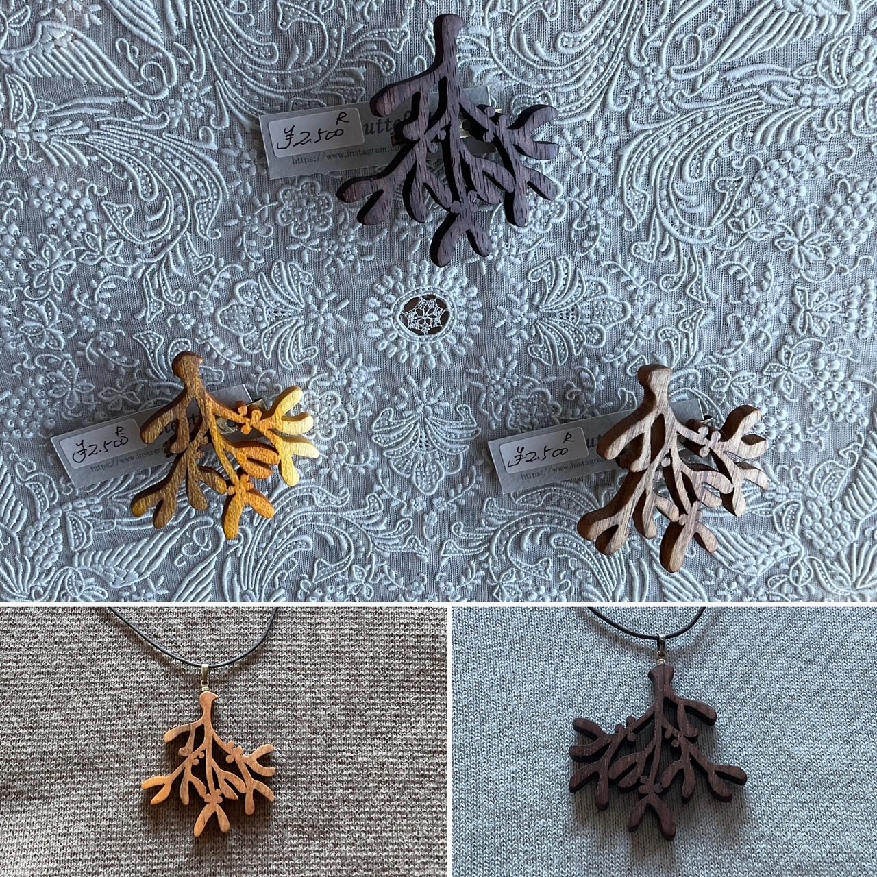 ヤドリギのアクセサリーが入荷しています。 ブローチ、ペンダントどちらも自然な木の色です。