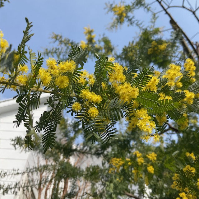 ルーフのミモザは花付きは悪いですが それでも咲いてきました。