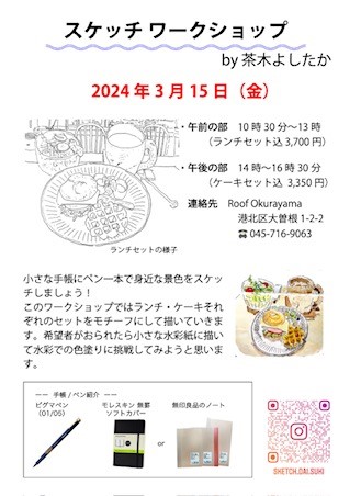 3月15日(金)のスケッチワークショプ 参加者を募集します。