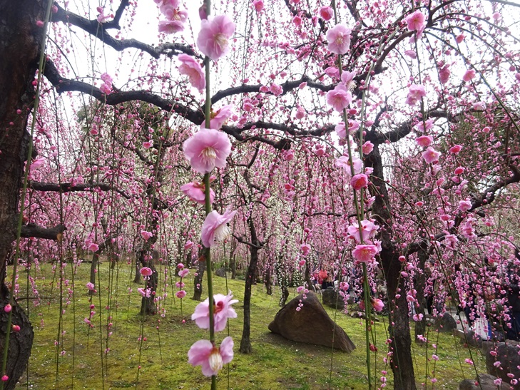 城南宮のしだれ梅を見ました。 こんなに沢山のしだれ梅を初めてみました。 ふつうの梅に比べ華やかで迫力があります。