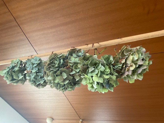 頂いたアジサイは盛りの青は抜けていますが アンティークの様な色が楽しめます。