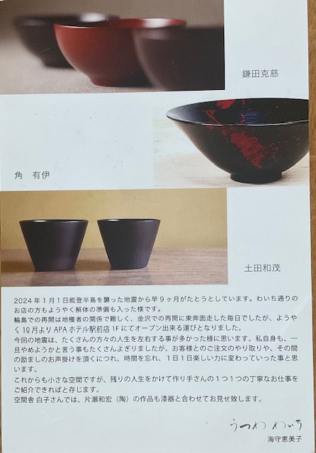 昨年輪島に行った折輪島塗のお椀を購入した お店から東京での販売の案内が届きました。