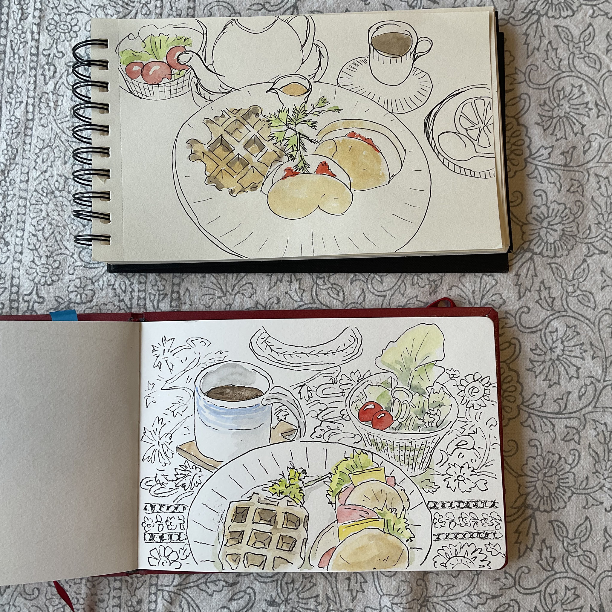 晴れの天気予報が外れ小雨が降ったり止んだりの 一日でしたが皆さま楽しんでスケッチされていました。