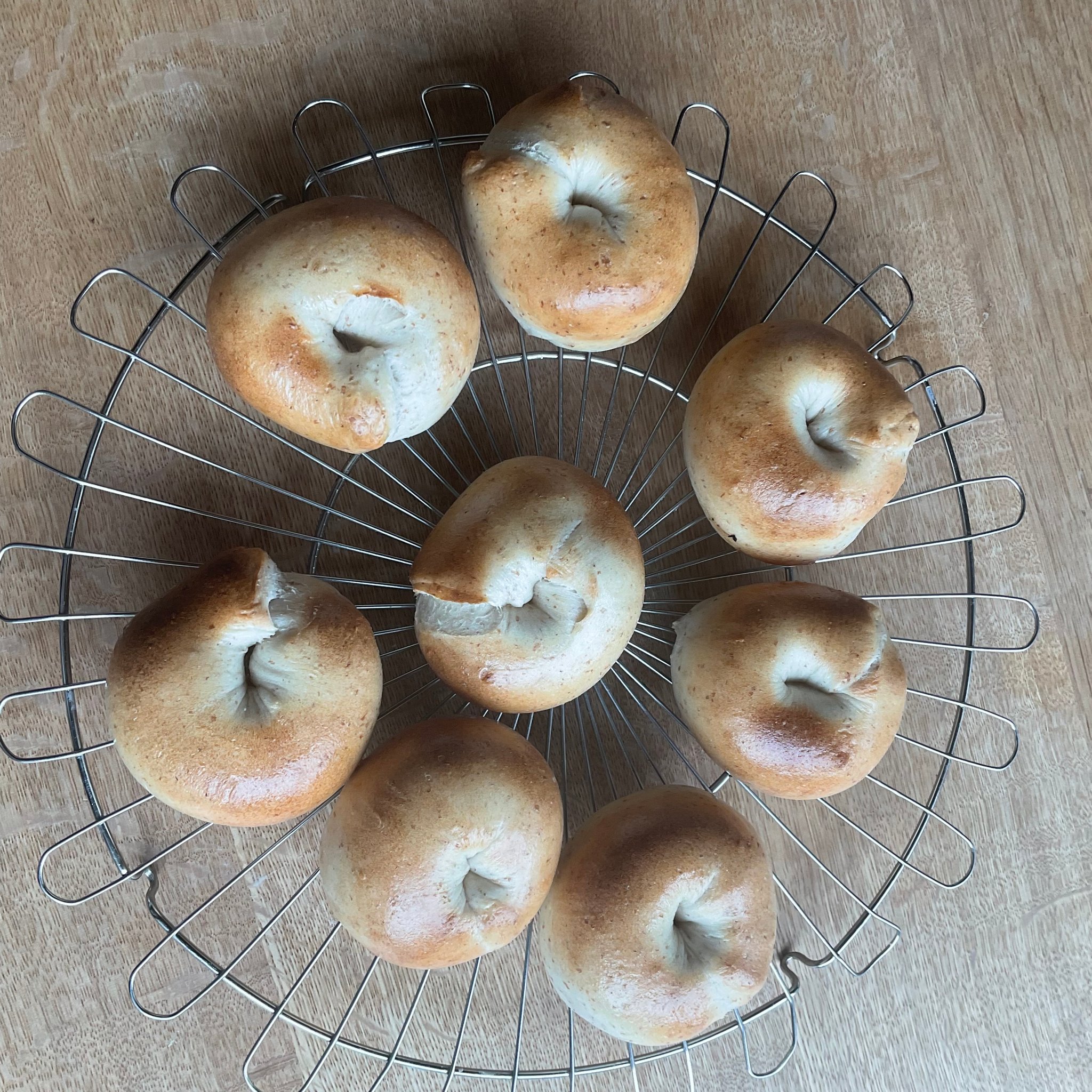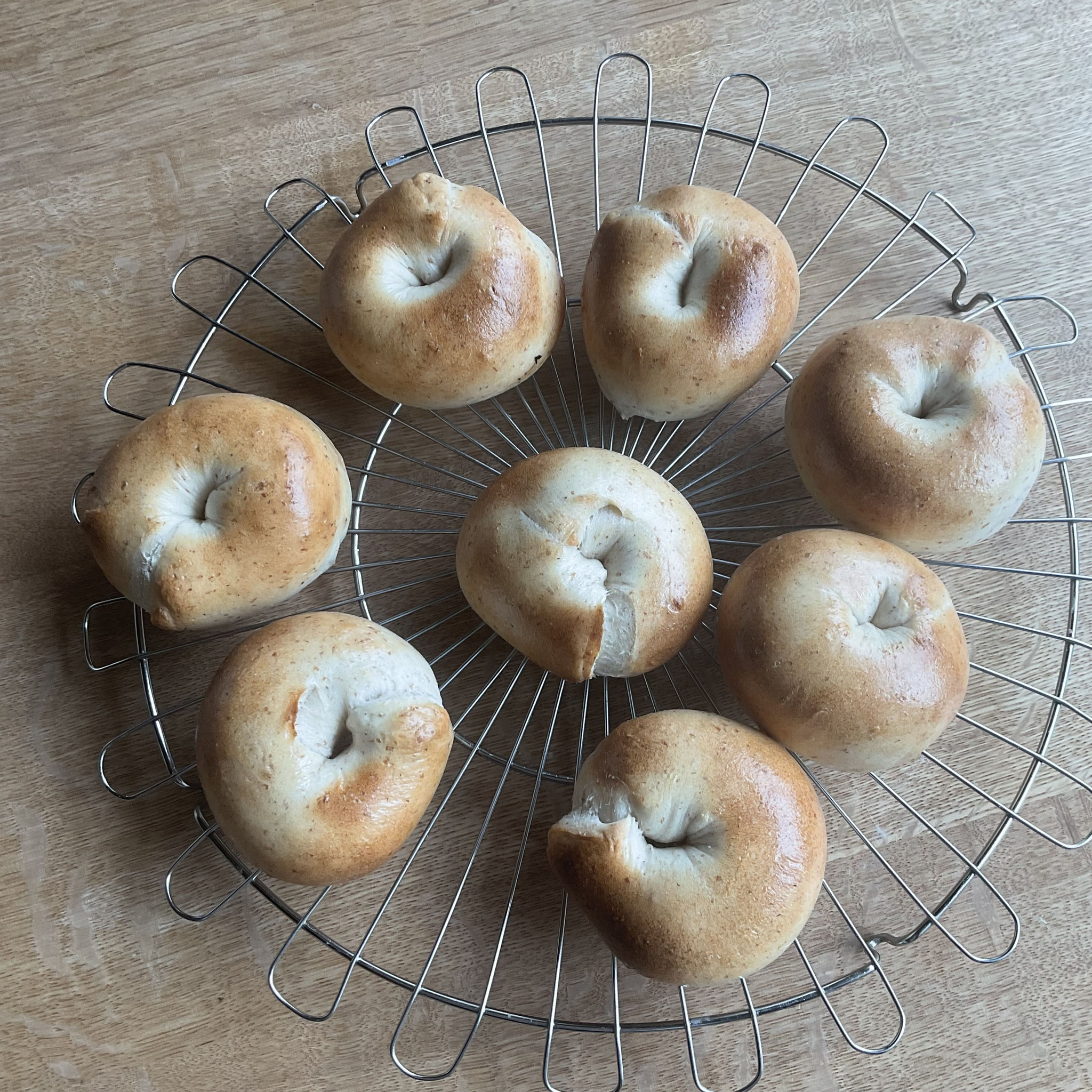 今ベーグルが流行っているそうで ケーキの様なベーグルやカラフルなベーグル などいろんなベーグルが出ているそうです。 ルーフのベーグルはサンドイッチにするので 小さめなプレーンのベーグルです。