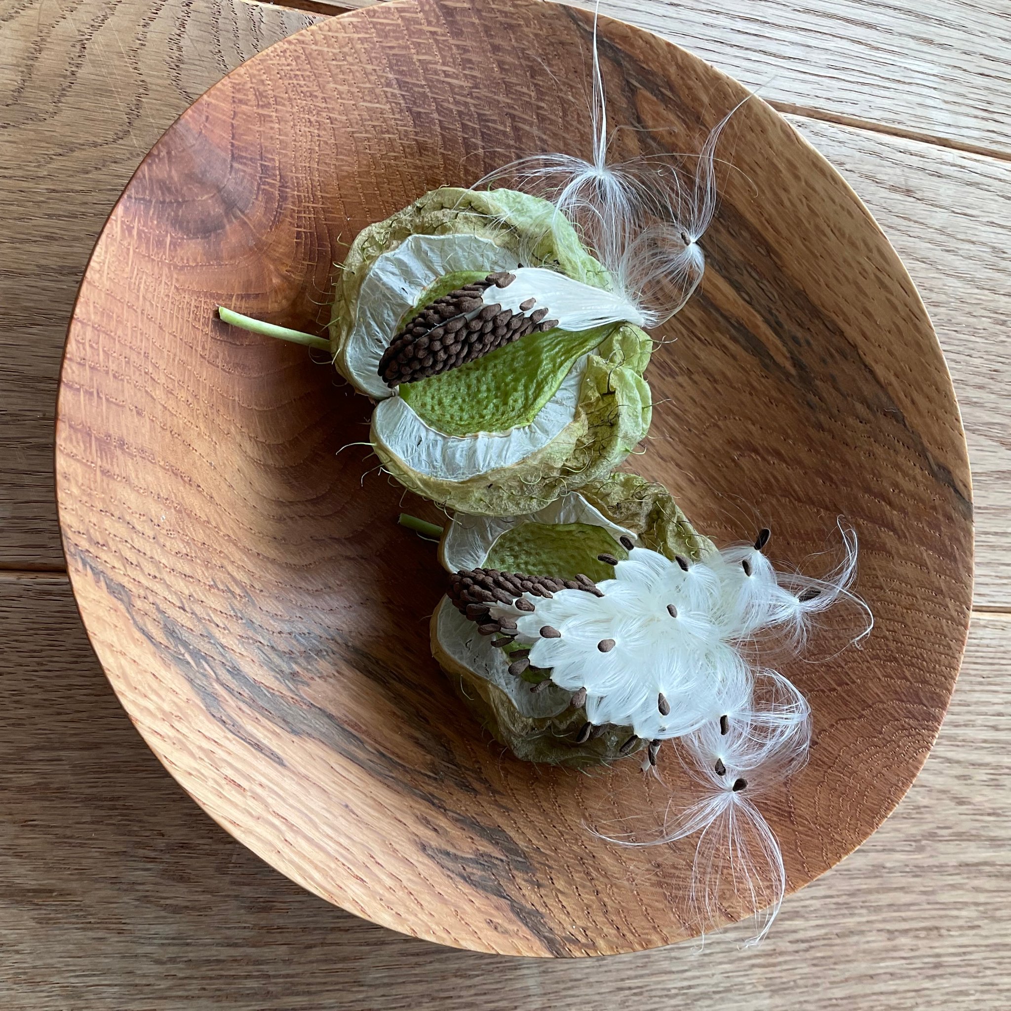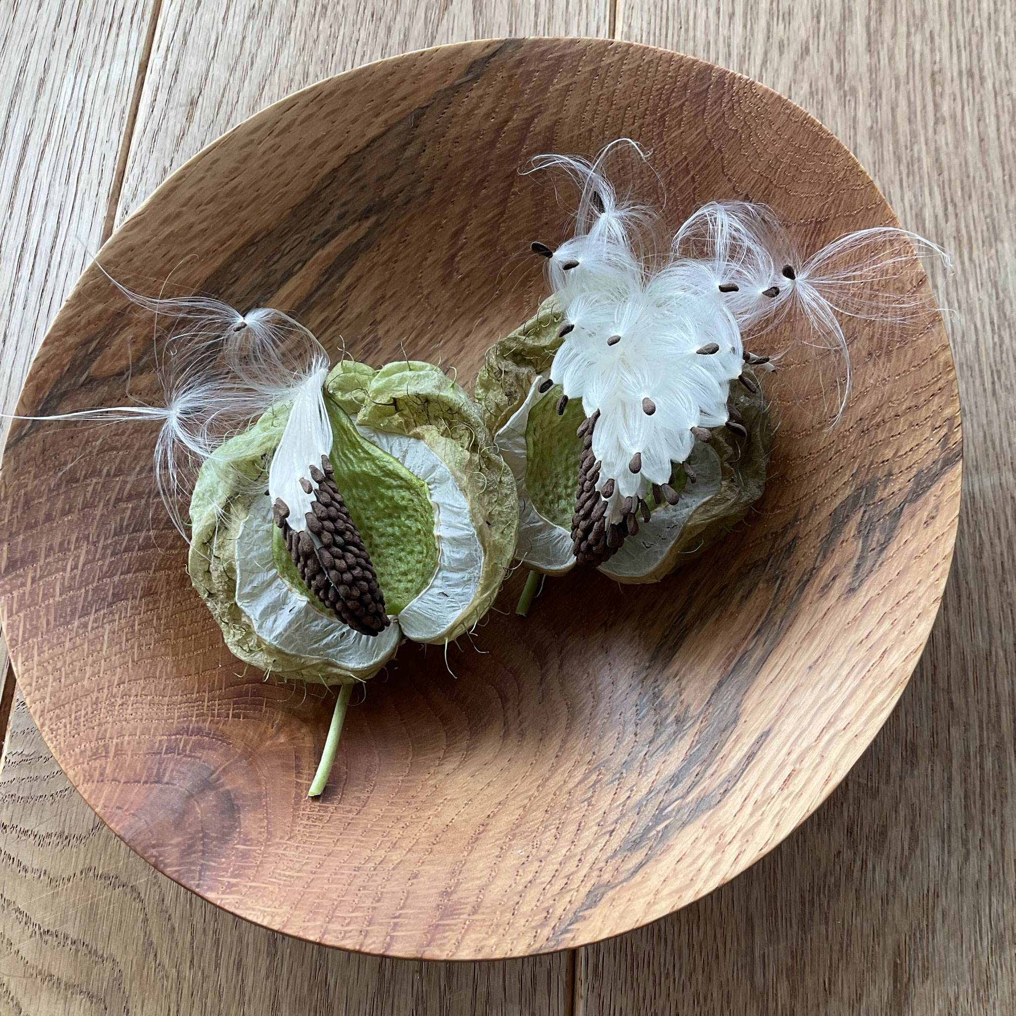 フウセントウワタの種が出来ました。 綿毛は絹の様に美しく輝いてます。 しばらくすると種1個1個が弾けてタンポポ みたいに飛んでいきます。