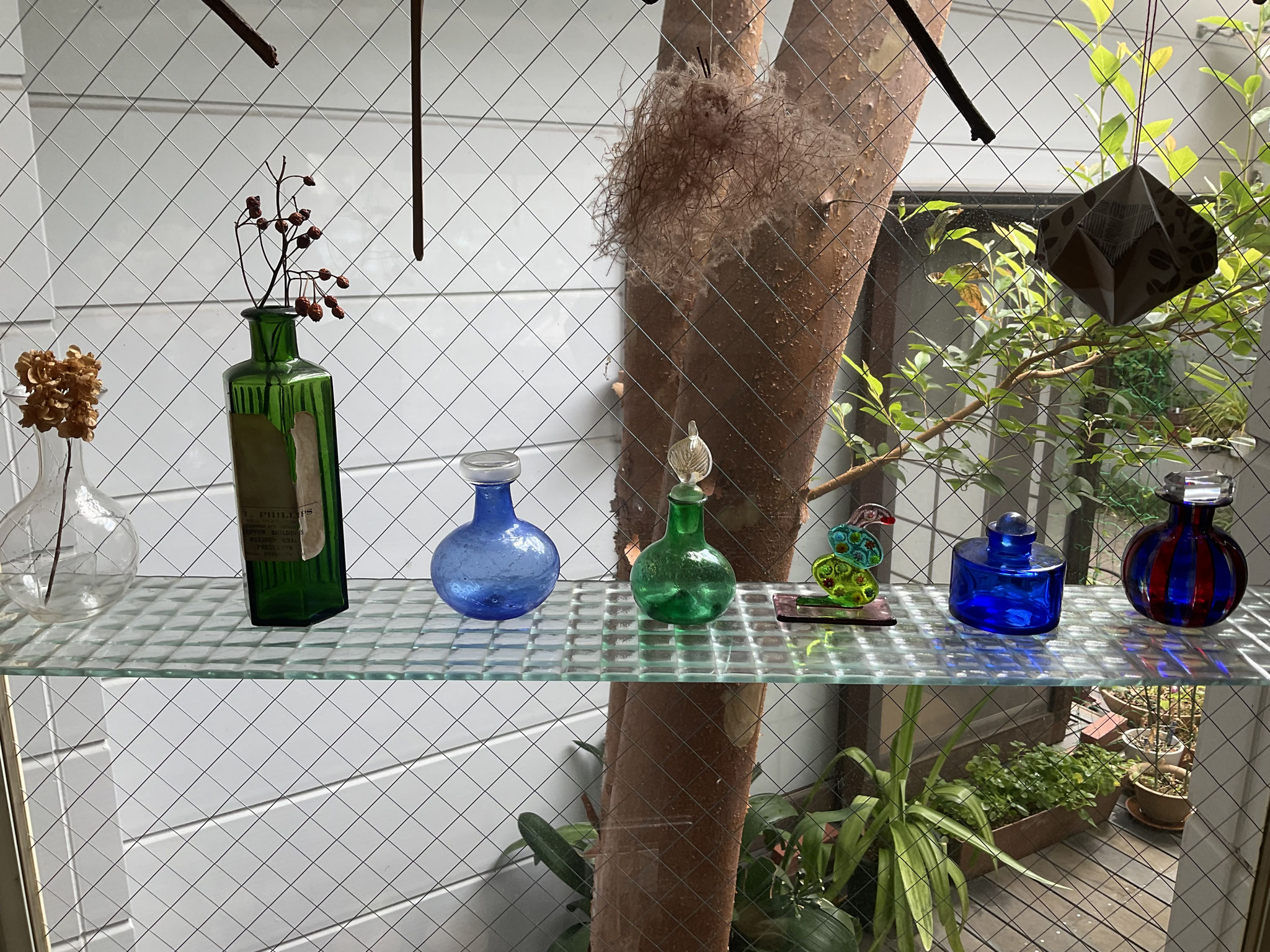 店内の掃除をしています。 ほこりが溜まった棚を拭き飾り直しました。
