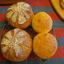 チーズを乗せて焼いたパンと岩塩を乗せて焼いたパンの間に