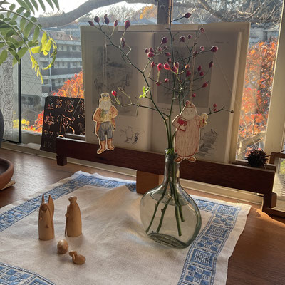 窓辺もクリスマスの飾り付けをしました。