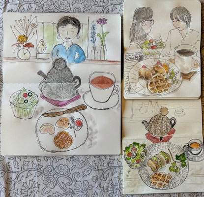 ルーフはドリンク、ワッフル、ベーグル、ケーキ