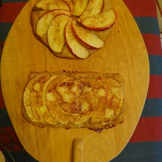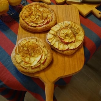 中にリンゴ煮を入れたパンと薄く伸ばし上にリンゴのスライスをのせ
