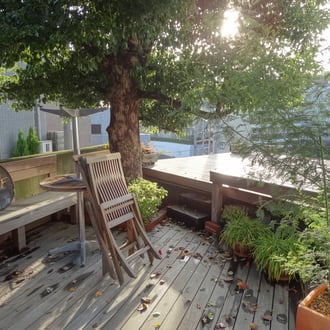落ち葉で一杯になったデッキですが植木も元気そうでほっとしました。